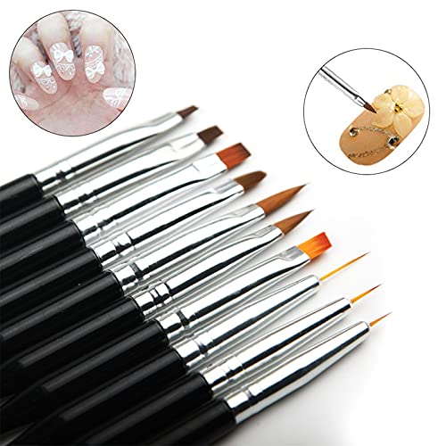 Paket enthält:Dieses Nagelwerkzeug enthält 10 Nagelbürsten,Eine Packung mit 10 verschiedenen Pinselgrößen ist. Jeder Pinsel hat seine eigene Funktion, die Ihren unterschiedlichen Anforderungen gerecht wird.