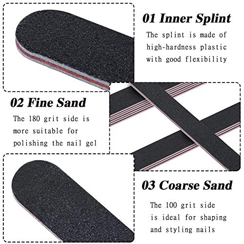Mehrere Funktionen: Diese doppelseitigen Schmirgelbretter mit Körnung 100/ 180 haben mehrere Funktionen, ideal zum Veranstalten eigener Nägel, Maniküre, Nageln pflegen, Nägel stylen und Abschleifen, Zehennagel, Gel- oder Acrylnägel, praktische Werkzeuge für die tägliche Nagelpflege und Nägel Kunst, können Sie sie in Nagelstudios oder zu Hause verwenden