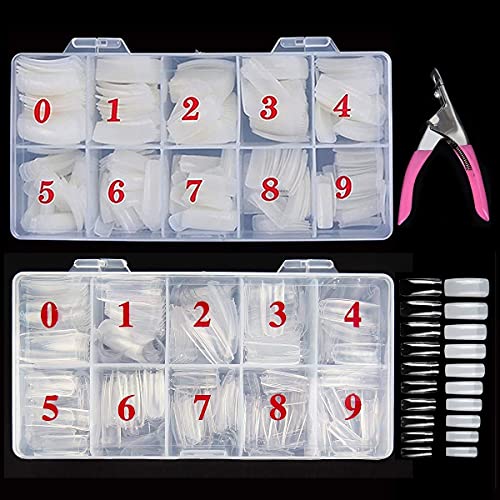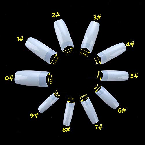 💅【Verschiedene Größen und perfekte Länge】: 1000pcs natürliche Acryl Fake-Nägel in einem Kunststoffkoffer bietet 10 verschiedene Größen mit 50 Nägeln von jeder Größe nummeriert 0-9, passen die meisten Finger.Dieses Ballerina-Nageldesign hat klare Farben und kann auf Ihre Länge zugeschnitten werden, geeignet für die Finger der meisten Menschen.
