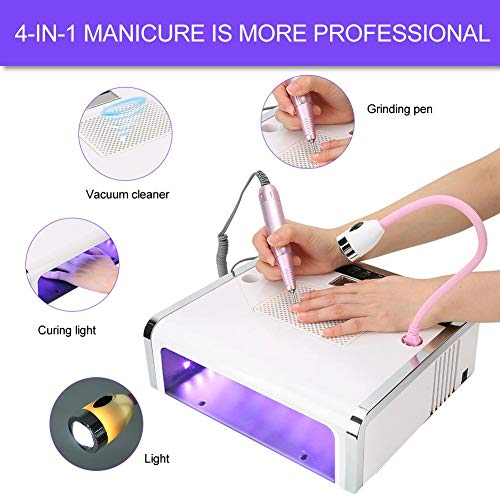★ MULTIFUNKTIONAL: Maniküre-Staubsaugen, Abschleifen, Beleuchten, Nagellack-Leimhärtungsmaschine vier in einer Maniküre-Maschine, eine Mehrzweckmaschine. Die 4-in-1-Maniküre ist professioneller: Sie löst Nagelprobleme, entfernt und schneidet Nägel, poliert, peelt, saugt ultrakrass, saugt 108 W an und kann Nagelreste resorbieren. Schnelltrocknender 360-Grad-Nagellack ohne Totwinkel, bequemer, damit Ihr Arbeitstisch sauber und ordentlich wird.