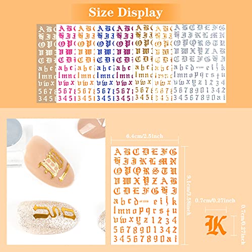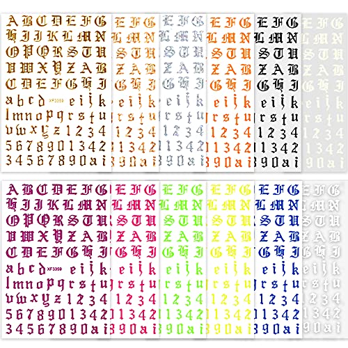 【Retro-Muster】 Nagelkunstaufklebe gibt 3 Arten von Mustern für Aufkleber: Retro-Groß- und Kleinbuchstaben sowie alte Zahlen. Jedes Muster verwendet ein 3D-Design mit dreidimensionalem visuellen Effekt und vollem Handgefühl. Jedes Muster hat 11 Farben.