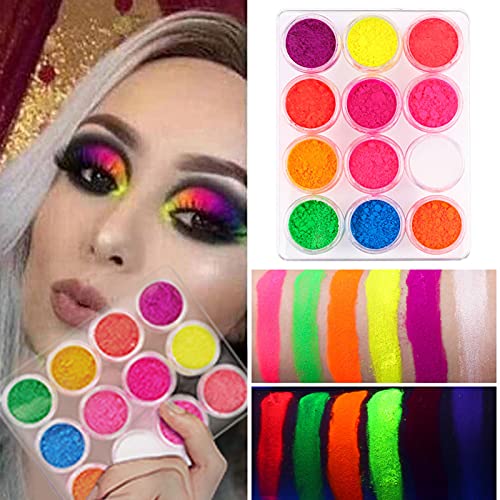 Die 12 Farben des fluoreszierenden Pulvers leuchten im Dunkeln. Es kann denn Nagelpulver oder Lidschatten sein, um Sie in der dunklen Umgebung glänzend ansonsten schön zu Gestalten.