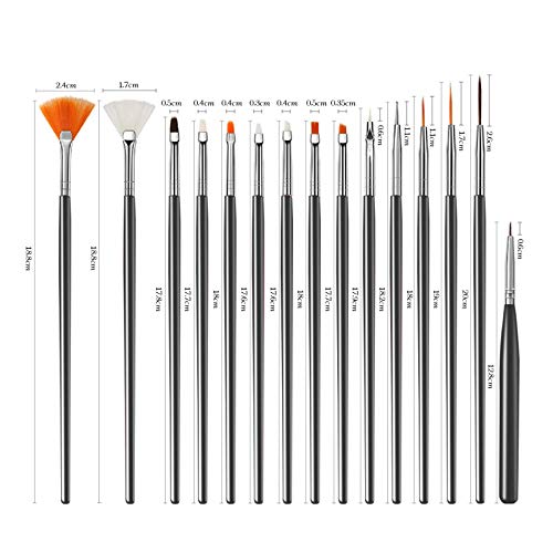 15 Pcs Nageldesign Nagel Pinsel, UV-Gel Nail art Pinsel, Nail Art pinselset, für Nail Art Design Painting Salon and DIY