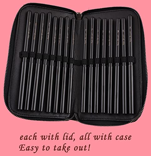 💞【Mit Deckel und Tragbarer Sicherheiten】Tragbare und praktische Aufbewahrung für Nagelkünstler/Profis. Jeder Stift ist mit einem praktischen Deckel ausgestattet. Alle Stifte sind perfekt in der PU-Ledertasche aufbewahrt. Mit dem Deckel können Sie Pinselhaare besser pflegen und das Pinselset gut aufbewahren. Mit dem PU-Etui können Sie dieses Pinselset problemlos ins Büro/Party/Tanzparty/Pop- oder Rockkonzert/Salon/Theater/Kino usw. mitnehmen.