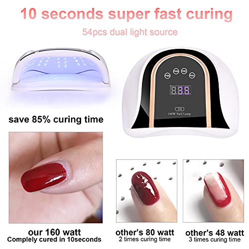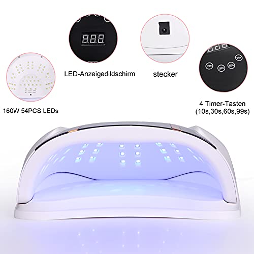 160W Nageltrockner Lampe,Aokyom® 54 UV LEDS Lampe für Nägel Professionelle Nagellampe mit 10/30/60/99s Timer LCD Anzeige…
