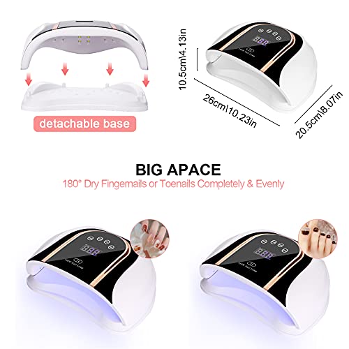 🌸🌸 【160W LED Nageltrockner und superschnelle Trocknung】 160-W-UV-LED-Lampenperlen basieren auf fortschrittlicher Dual-Waveength-Technologie (365 nm + 405 nm), sodass sie schnell getrocknet werden können, um verschiedene Arten von Nagellack, Strasssteinen und Leimhärtung aufzutragen . Ausgestattet mit 56 langlebigen LED-Lampenperlen gleichzeitig können mit Nagellack beschichtete Nägel schnell getrocknet und die Aushärtezeit um 80% verkürzt werden.