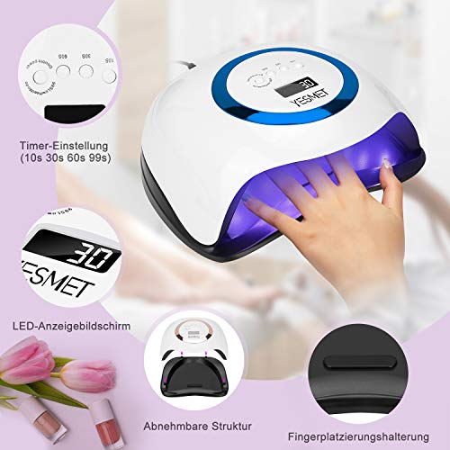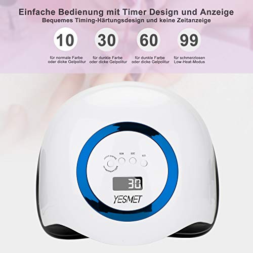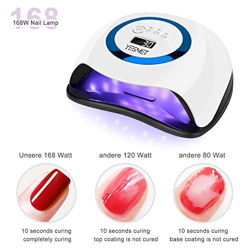 168W Nageltrockner YESMET UV Nageltrockner Lampe für Fingernagel und Zehennagel,10/30/60/99s Timer, Abnehmbarer…