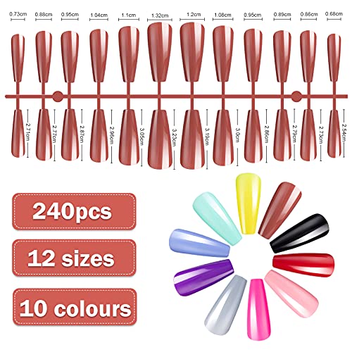 Paket beinhaltet: Sie erhalten insgesamt 240 Fragment lange Ballerina Kunstnägel in diesem Set. Es enthält 10 verschiedene Farben und eine ausreichende Menge, um Ihre Anforderungen an Nail Art Designs zu fertigstellen.