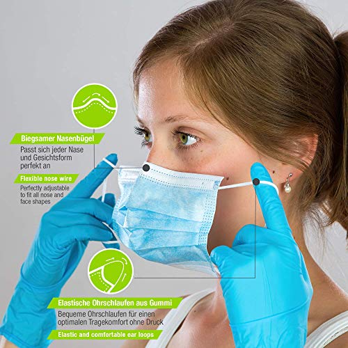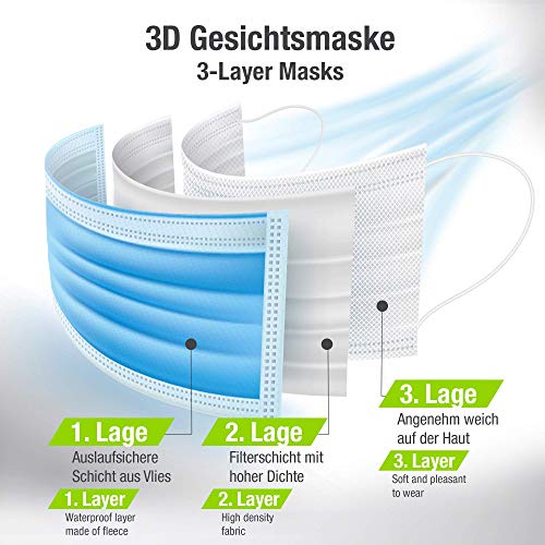 Donnerberg Gesichtsmaske 50 Stück 3-lagige Einwegmasken Atmungsaktiv Einmalmaske elastische Ohrschlaufen Maske Blau