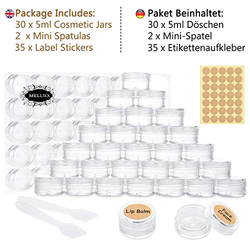 30 Stück Döschen, Cremedose Leer Tiegel Mini Cremedöschen mit Etikettenaufkleber und Mini-Spatel für Nailart…