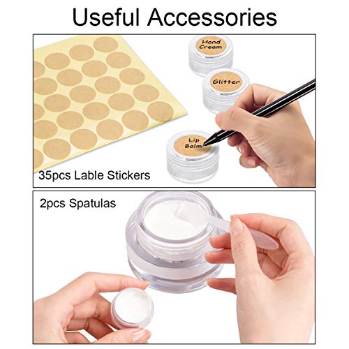 Einfach zu Verwenden – Das Set enthält die Minispatel und die Etikettenaufkleber. Sie können Ihnen helfen, das Plastik Döschen zu füllen und den Inhalt zu identifizieren.