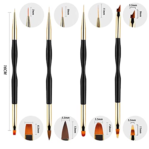 Der Nagelpinsel hat einen Vintage-Acrylgriff, der die richtige Größe hat und sensibel und angenehm in der Hand liegt. Jede Bürste hat 2 verschiedene Enden, die für verschiedene Handwerke angemessen sind.