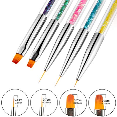 Lieferumfang: 5 Ausschnitt Nagelpinsel mit 5 verschiedenen Größen, ideal zum Zeichnen verschiedener Designs auf den Nagelspitzen. Sie können sie aka verwenden, um Puder und Flocken auf die Nägel zu streuen.