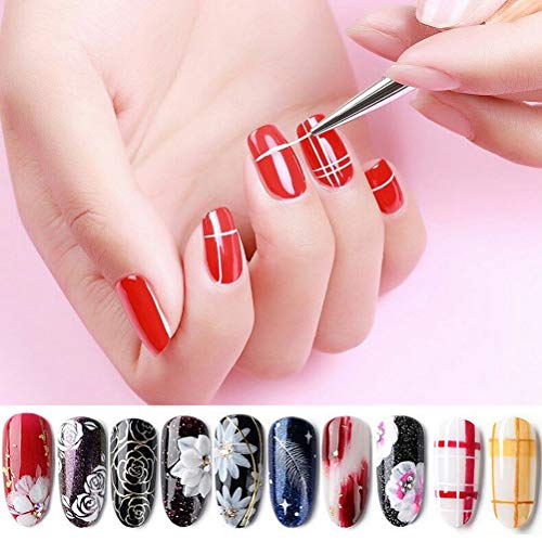 Einfach zu verwenden: Die Nail-Art-Pinsel sind leicht und bequem, sie sind einfach zu halten und zu malen, aka für Anfänger. Sie können sie verwenden, um Linien zu zeichnen, Details zu eingießen, einfache Bilder denn Blumen oder sonstige Muster zu zeichnen, machen Ihre Nägel schöner und charmant.