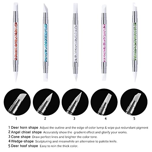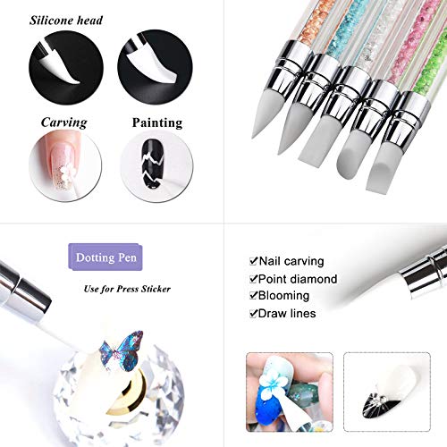 5 Stück Silikon Nagel Pinsel,Picker Dual Dotting Pen,Silikon-Kopf-Acryl Nagel PinselStrass,Doppelkopf-Picker aus…