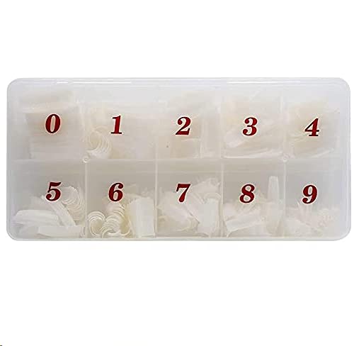 MEHRERE GRÖSSEN: 500 Stückchen Acryl-Nagelspitzen mit Box, die 10 verschiedene Größen bieten, die für die meisten Finger passen. Mit 50 falschen Nägeln jeder Größe, nummeriert von 0-9 auf der Box