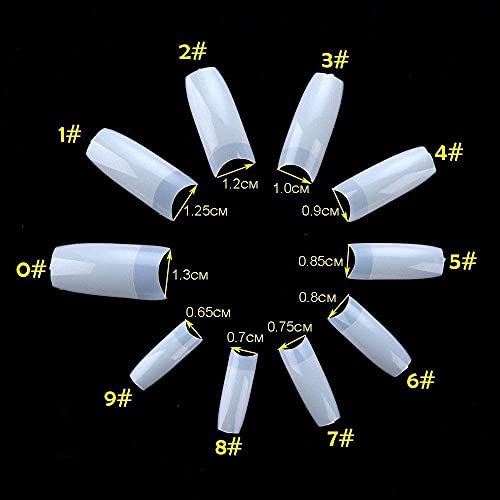 MEHRERE GRÖSSEN: 500 Abschnitt Acryl-Nagelspitzen mit Box, die 10 verschiedene Größen bieten, die für die meisten Finger passen. Mit 50 falschen Nägeln jeder Größe, nummeriert von 0-9 auf der Box