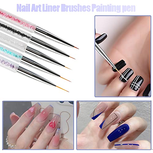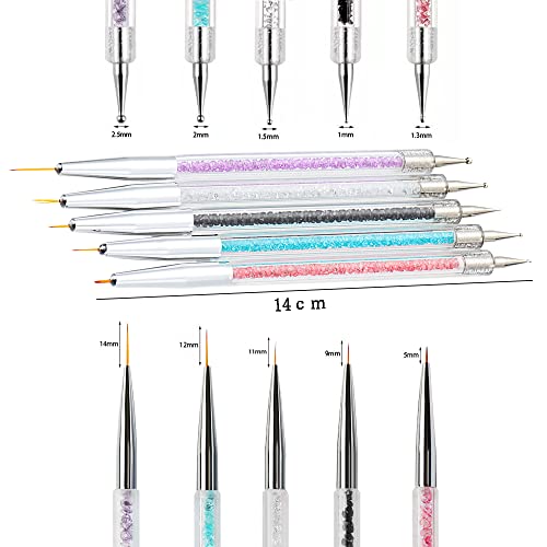 5PCS Nail Art Liner Brush Nail Design Brushes Nail Art Brush Set Nail Art Dotting Pinsel Dual-Ended Nail Art Pen Drawing…