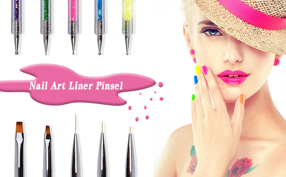 💅[Hochwertiges Material]:Der Stiftkörper besteht jeglicher hochwertiger Legierung + Diamant + Acrylmaterial, das nicht verformt oder korrodiert ist, und langlebig ist. Schlankste Borsten, glänzende Strasssteine im Henkel, einzigartiges und stilvolles Design, am ehesten Brauchbar an Stelle Malerei.
