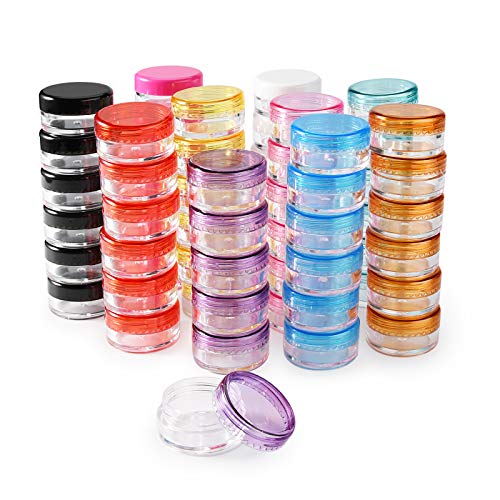 Bunte Deckel: Der Deckel des Döschens hat 10 verschiedenen Farben. 6 Stück pro Farbe. Die Döschen ist transparent, deshalb lässt sich einfach den Inhalt zu sehen.