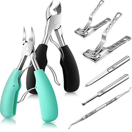 Das 7-teilige Nagelknipser-Set enthält 2 dicke Zehennagelknipser, 2 Nagelknipser mit rotierendem Kopf, Nagelhautentferner, Nagelfeile und Zehennagelheber sowie Zehennagelwerkzeuge aus Edelstahl für dicke eingewachsene Nagelmaniküre