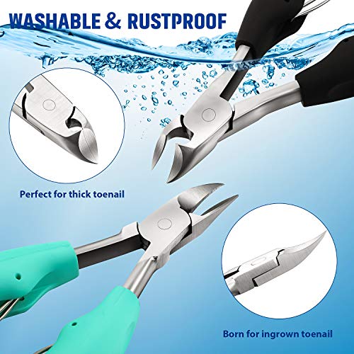 Robustes Material: Der Griff unserer dicken Zehennagelknipser besteht aus Antiblockiersystem-Material, das sich durch rutschfeste und weiche Tastbarkeit auszeichnet. Diese Zehennagelwerkzeuge aus Edelstahl sind rostbeständig, langlebig, robust und tragbar, biegsame Feder für besseren Halt und bringen Sie schön mit erfahrung