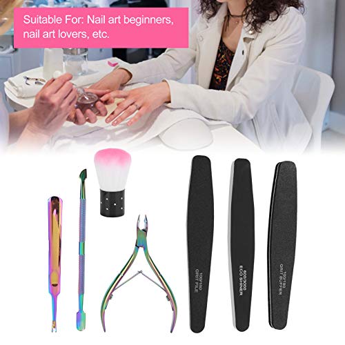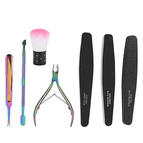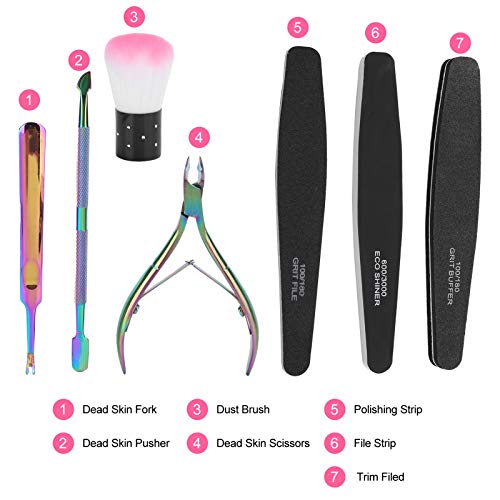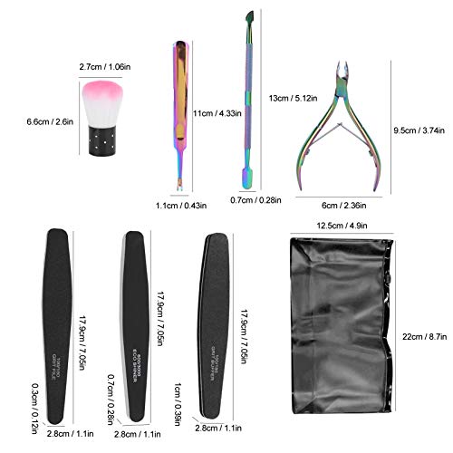 Verschiedene Funktionen Edelstahlschieber und Nagelhautgabel zum einfachen Keinen Finger krumm machen abgestorbener und schmutziger Haut um den Nagel; Doppelseitige Nagelfeile und Polierfeile prägen Ihre Nägel glatt; Mit der sauberen Bürste können Sie Staubrückstände leicht Keinen Finger krumm machen.
