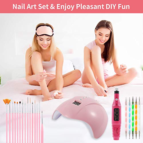【Tragbares Acryl-Nagel-Kit】 Nagel-Kit-Set Professionelles Acryl mit allem, kommt mit UV-Nagellampe, Nagel-Bohrmaschine, 15-teiligen Nagelkunstbürsten, 5-teiligen Stift-Punktierwerkzeugen, 2 Schachteln mit Nagelschmuck-Aufklebern, 10-teiligen Nagelstreifenbändern, Nagel Pufferblock, Zehentrenner, Mini-Nagelfeile, Silikonstift und Klauenbürste. Ein Set enthält alles, um Ihnen mehr Komfort zu bieten.