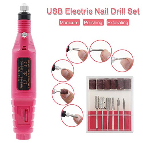 【Multifunktionaler Elektrischer Nagelbohrer】 USB-Nagelbohrer mit 6 optionalen Bohrern / Schleifbändern hilft Ihnen, Schwielen zu glatt feilen, überschüssige Nagelhaut zu Untätig sein, Nägel zu abschleifen, zu aufziehen und zu glätten. Einfacher Wechsel der Befestigung, kein Werkzeug zum Einsetzen oder Untätig sein des Bohrers erforderlich. Sie können Ihre Hände und Füße sanft mit einem Standard an Perfektion und Eleganz umreißen.