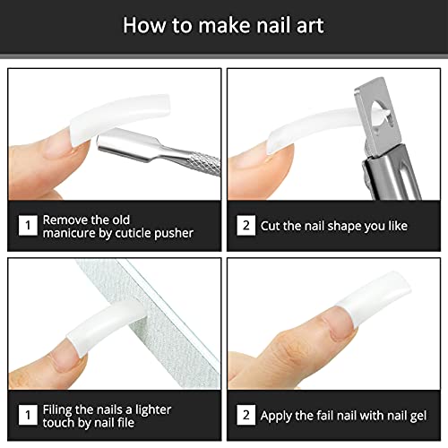 Der Nagelspitzentrimmer verfügt über ein einfach zu handhabendes und zu kontrollierendes Griffdesign, mit dem Sie falsche Nägel in die verschiedenen Aufführen absicheln können, indem Sie den Winkel des Nagelknipsers anpassen, z Pusher ist schön, um abgestorbene Nagelhaut wegzuschneiden oder abzukratzen, die Nagelfeilen eignen sich zum Stutzen Ihrer Nägel auf die richtige Länge.