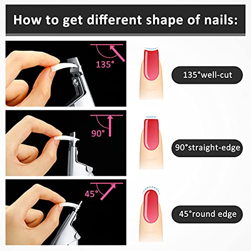 Praktisch in der Anwendung: Der Nagelspitzentrimmer verfügt über ein Griffdesign für eine einfachere Handhabung und Kontrolle, mit dem Sie falsche Nägel in die verschiedenen Aufführen absicheln können, indem Sie den Winkel des Nagelknipsers anpassen, zum Beispiel, mit dem Nagelhautschieber lässt sich abgestorbene Nagelhaut gut abschneiden oder dahinscheiden, die Nagelfeilen eignen sich zum Stutzen Ihrer Nägel auf die richtige Länge