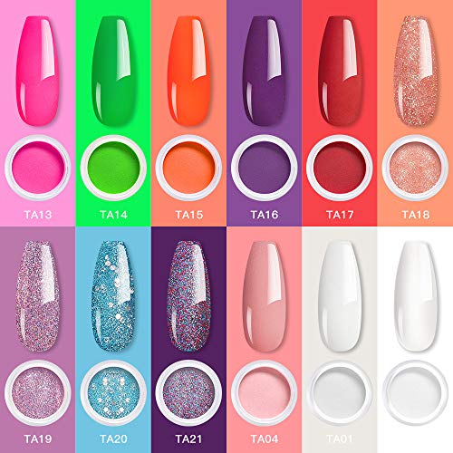 Nagelkunst-Dekor-Acryl-Pulver: mit Acrylpulver in 12 Farben für Nägel. Verschiedene Farben können vielseitig verwendet werden. Hellere Farbtöne sind besser für Nageldekoration. Klares Acrylpulver ist besser für Kristallnägel. Kann sogar mit Nagellack, UV-Gel, Strass oder Dip System verwendet werden, für einen wunderbareren und glänzenden Nägel-Effekt