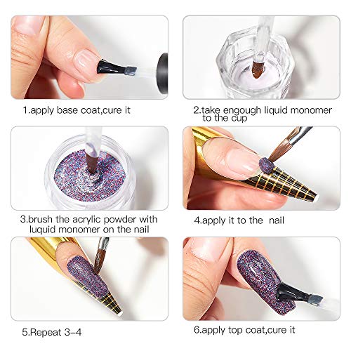 Ungiftig und langlebig: Treffen Sie die Acryl-Nagelpulver mit einer ausgezeichneten Haftung mit Acryl-Flüssigmonomer, um die Farbklarheit und beste Haftung auf natürlichen Nagelplatten zu gewährleisten und zu unterbinden, dass sie vergilben oder stumpfen. Es kann mehr als 21 Tage halten, aka ohne Nageltrockner aushärten.