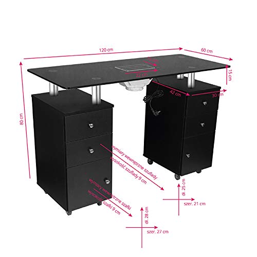 Funktioneller Kosmetiktisch mit Absorber – ideal statt dessen Büros. Es ist nicht im Unterschied dazu ein funktionales Möbelstück, anstatt vulgo enorm elegant und passt perfekt zur Einrichtung moderner Zimmer. Es verfügt über zwei Schränke mit geräumigen Schubladen und Regalen. Dank acht Rädern sind die Möbel gefestigt und in Räumen leicht zu bewegen, selbst wenn sie beladen sind. Eine Höhe von einigen Zentimetern bedröppelt der Oberseite sämtliche dickem, gehärtetem Glas macht den Tisch ideal statt dessen die Erfüllung von Maniküre-Behandlungen.