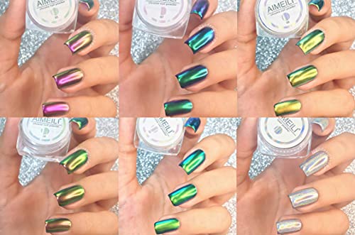 AIMEILI 6 Jar Pearl Powder Chromnägel Spiegeleffekt Chamäleon Staub Glitter Laser Powder Chamäleon Holographic Nail Powder Glitter Nail Art Dekoration