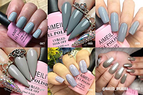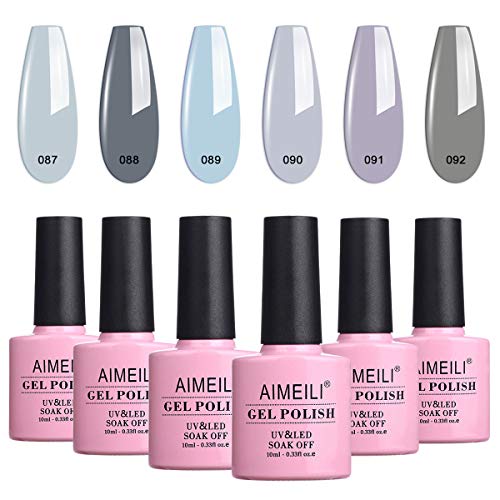 AIMEILI UV LED Gellack mehrfarbig ablösbarer Gel Nagellack Grau Gel Nail Polish Set – 6 x 10ml – Kit Nummer 25