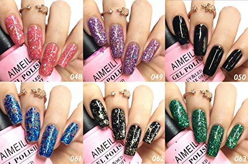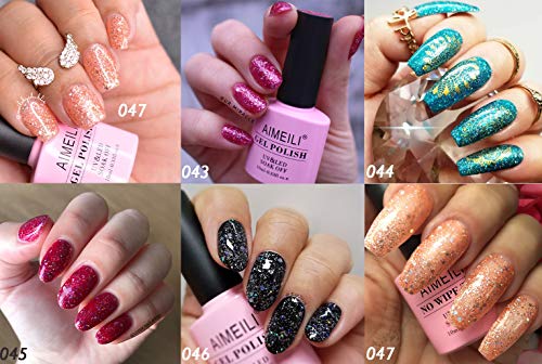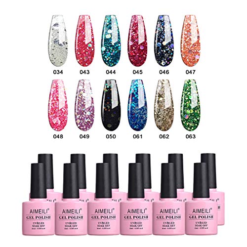 AIMEILI UV LED Glitzer Gellack mehrfarbig ablösbarer Gel Nagellack Gel Polish Set – 12 x 10ml – Kit Nummer 7