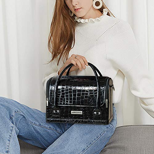 Amasava Kosmetikkofer Schminkkoffer Beauty Make-up Case,aus PVC-Leder,2 verfügbare Ebene,mit Schultergurt, 4 in 1 Beauty…