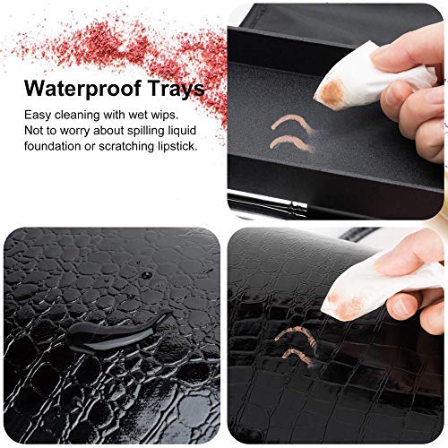 🌻【Abrieb- und schmutzabweisend】 Das Äußere des Make-up-Gehäuses besteht aus PVC-Material, das schmutzabweisend und glänzend ist. Der untere Teil des Make-up-Gehäuses hat vier Metallhalter, um zu verhindern, dass der untere Teil am Boden reibt und Flecken verursacht