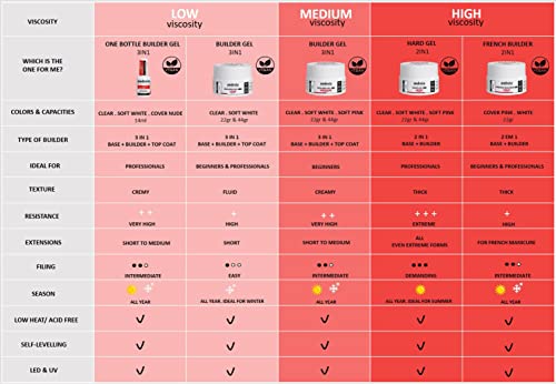 3 in 1 Aufbaugel mit niedriger Viskosität, selbstnivellierend und hoher Widerstandsfähigkeit. Aushärtung unter LED- und UV-Lampe.