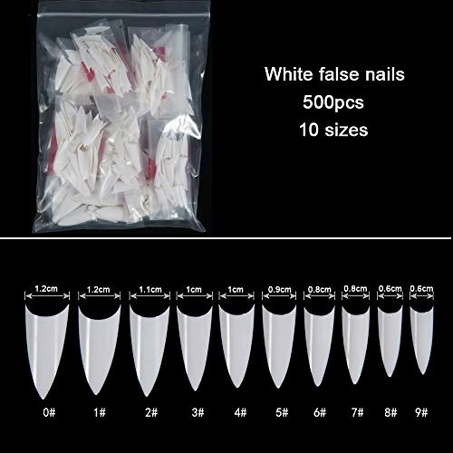 ANEWISH 500 Stück Weiß Künstliche Fingernägel Falsche-Fingernägel Kunstnagel Nagel Fake Nägel Nagelspitzen für DIY…