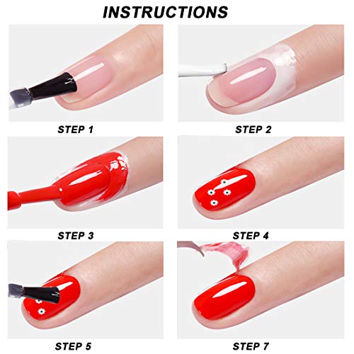 Um die Sichtbarkeit und Haltbarkeit der Nagelabziehbilder zu gewährleisten, tragen Sie bitte zuerst Nagellack auf, kleben Sie dann die Nagelabziehbilder auf und versiegeln Sie sie zuletzt mit Decklack.