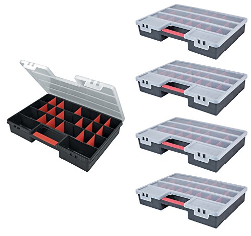 Sie können unseren Sortimentskasten individuell einteilen. Entweder Sie nutzen ihn ohne Einsteckwände folglich haben Sie 3 große und 2 mittlere Fächer oder Sie unterteilen in in bis zu 24 kleine und 2 mittlere Fächer. In der Regel haben Sie 21 Einsteckwänder im Lieferumfang.