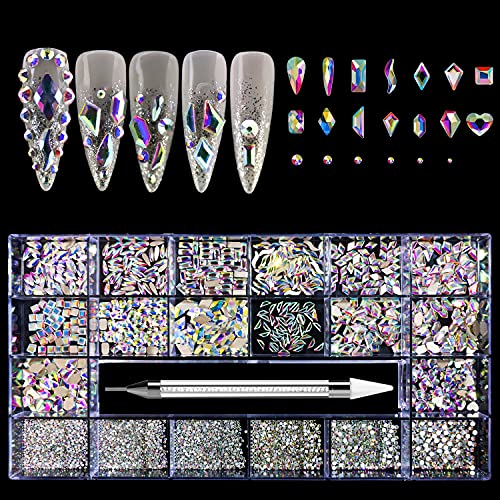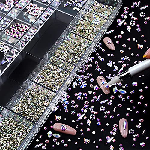 Paket inklusive: 3000 Mischgröße Nagelkristall AB Edelsteine und 1 stücke Rhinestone Picker Doting Pen