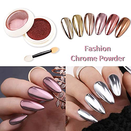 BISHENGYF Rose Gold Chrome Nail PowderãNeue UpgradeãGrosse Kapazität Chrom PulverãSuper-SpiegeleffektãMetall Mirror Chrome Powder âNeon Glassy Pearl Effect Glitter Nagelkunst Pulver für DIY Salon