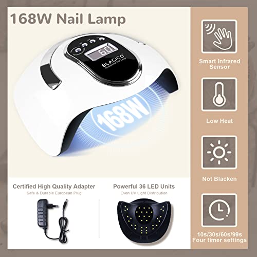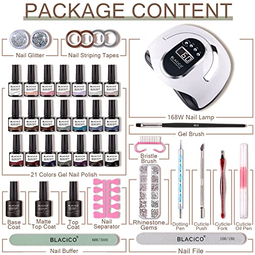 BLACICO UV Nagellack Set mit UV Lampe, 21 Farben UV Nagellack Set für 168W UV LED Lampe, Top Coat, Base Coat, Matter…