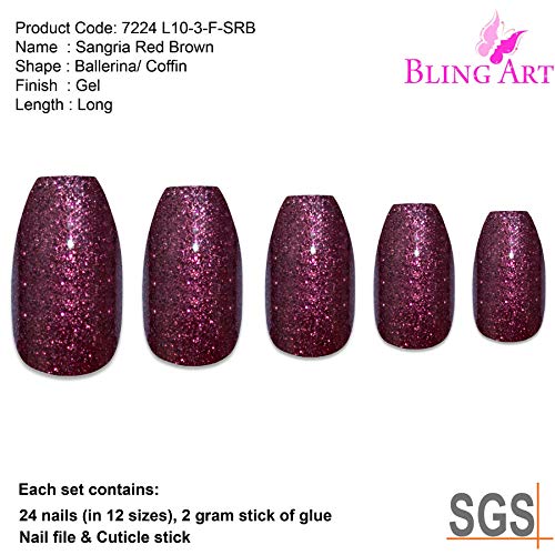Sangria Green Brown – Ballerina Coffin Long – Jedes Set enthält 24 Nägel, Nagelfeile, Nagelhautstab und einen 2 Gramm Klebestift.