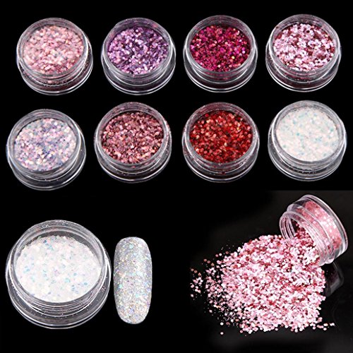 8 Boxen Nagelglitzer-Puder (8 verschiedene Farben).