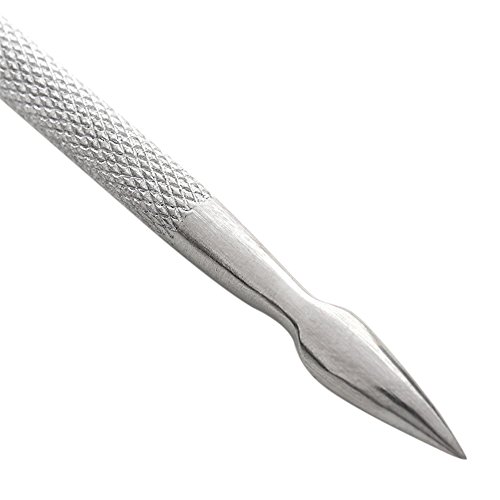 Das löffelartige Abschluss (gebogenes Abschluss) dient zum Schieben der Nagelhaut – das Design hilft, die Nagelhaut zu abhalten.