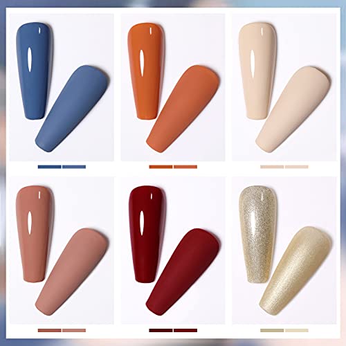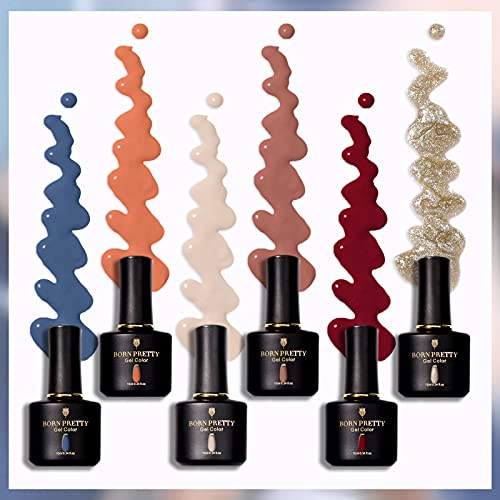 [6 Farben Gel-Nagellack-Set und größere Kapazität]: 6 Farben 10ml herbst winter UV nagellack set, die schönen beliebten Trendfarben verleihen Ihrem Nagel ein attraktives Aussehen, geeignet für fast alle Jahreszeiten, insbesondere für Herbst und Winter; Größere Kapazität, jede Flasche des Gel-Nagellacks hat 10 ml